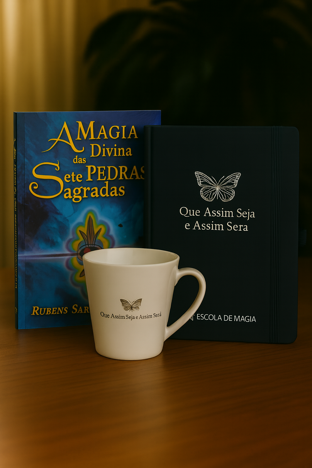 A caneca oficial da Escola de Magia traz a frase “Que Assim Seja e Assim Será”, atuando como um ponto de ancoragem durante momentos de estudo, reflexão e prática.