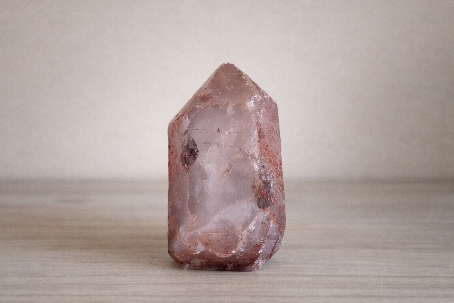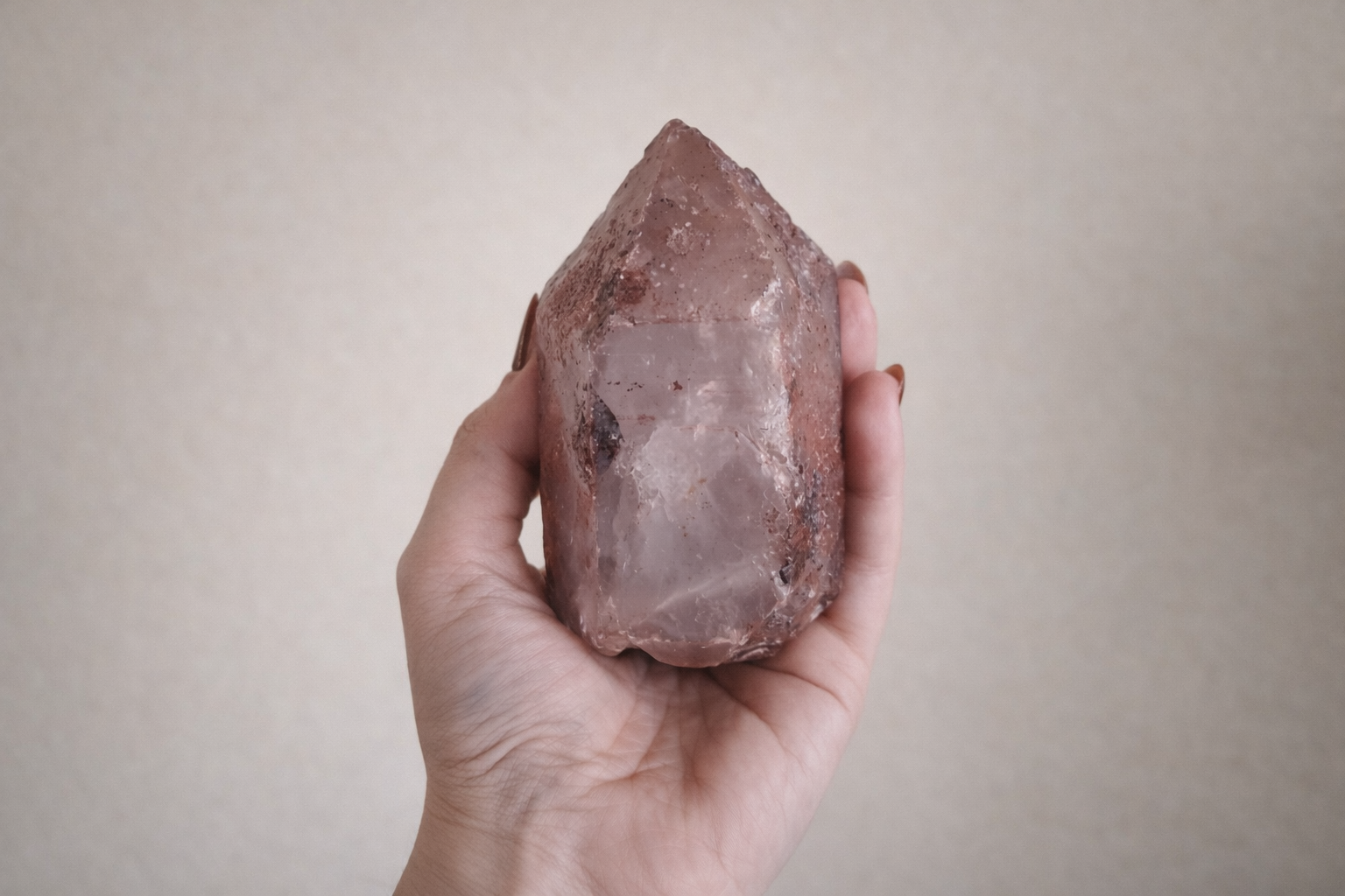 O Quartzo Hematóide Fumê combina as propriedades estabilizadoras do quartzo fumê com a presença do hematóide em sua estrutura mineral, criando uma pedra tradicionalmente associada ao fortalecimento da presença, clareza mental e capacidade de materialização.