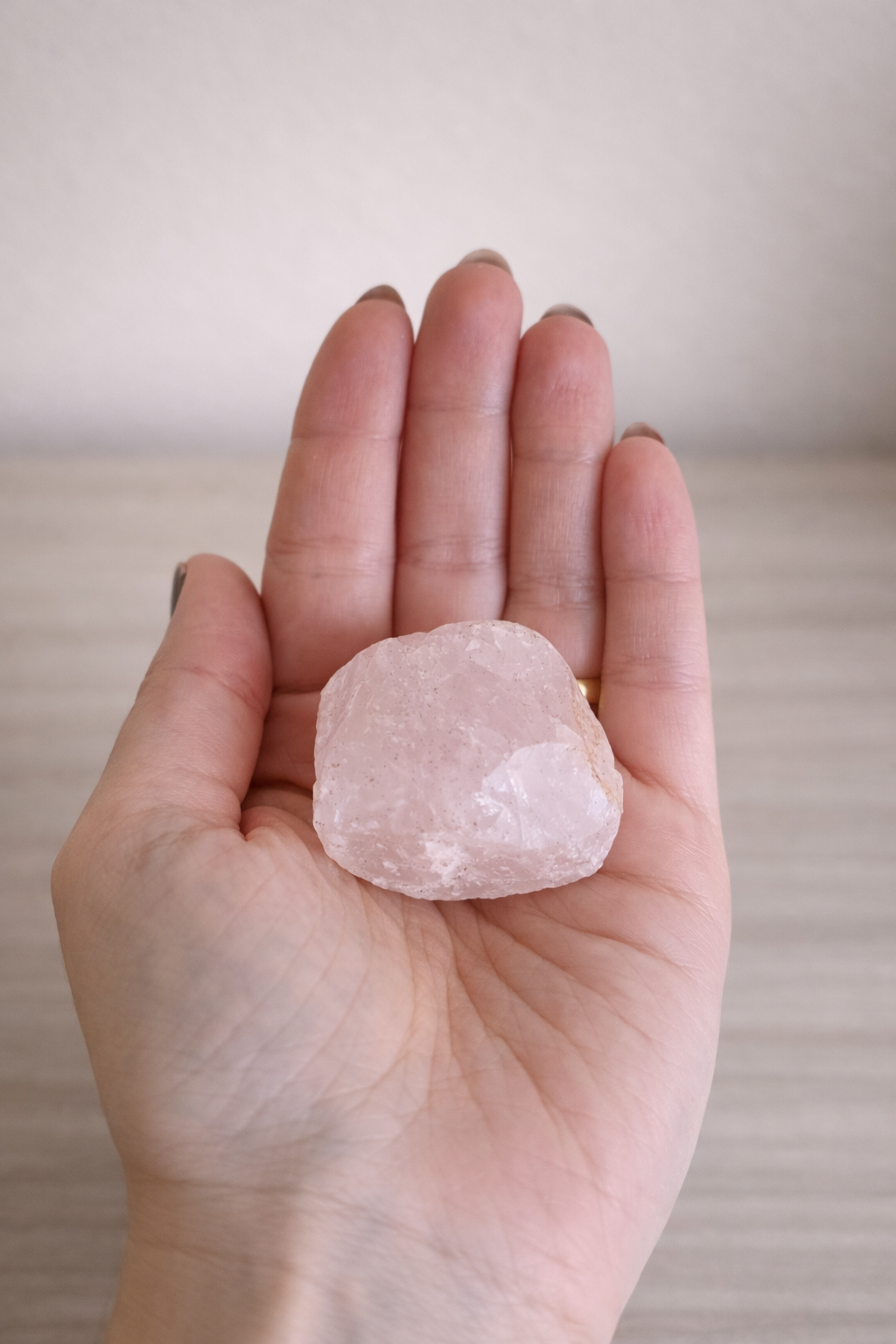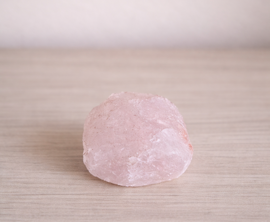 Em sua forma bruta natural, o Quartzo Rosa preserva suas características minerais originais, mantendo uma energia mais direta e autêntica. É indicado para ambientes de descanso, meditação, práticas espirituais ou espaços que necessitam de maior suavidade vibracional.