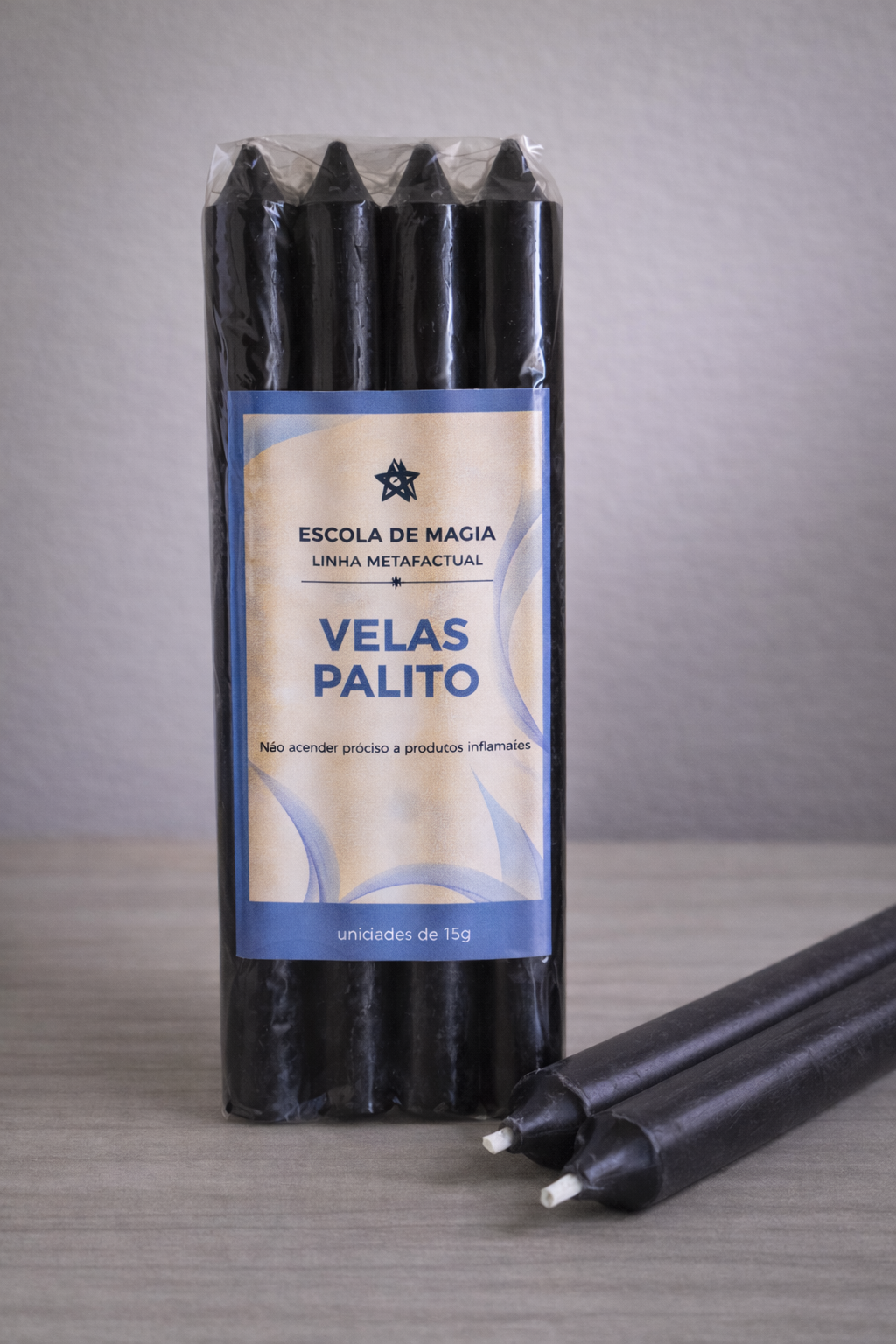A vela palito preta é tradicionalmente associada à absorção simbólica, proteção e encerramento de processos.